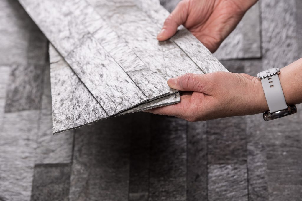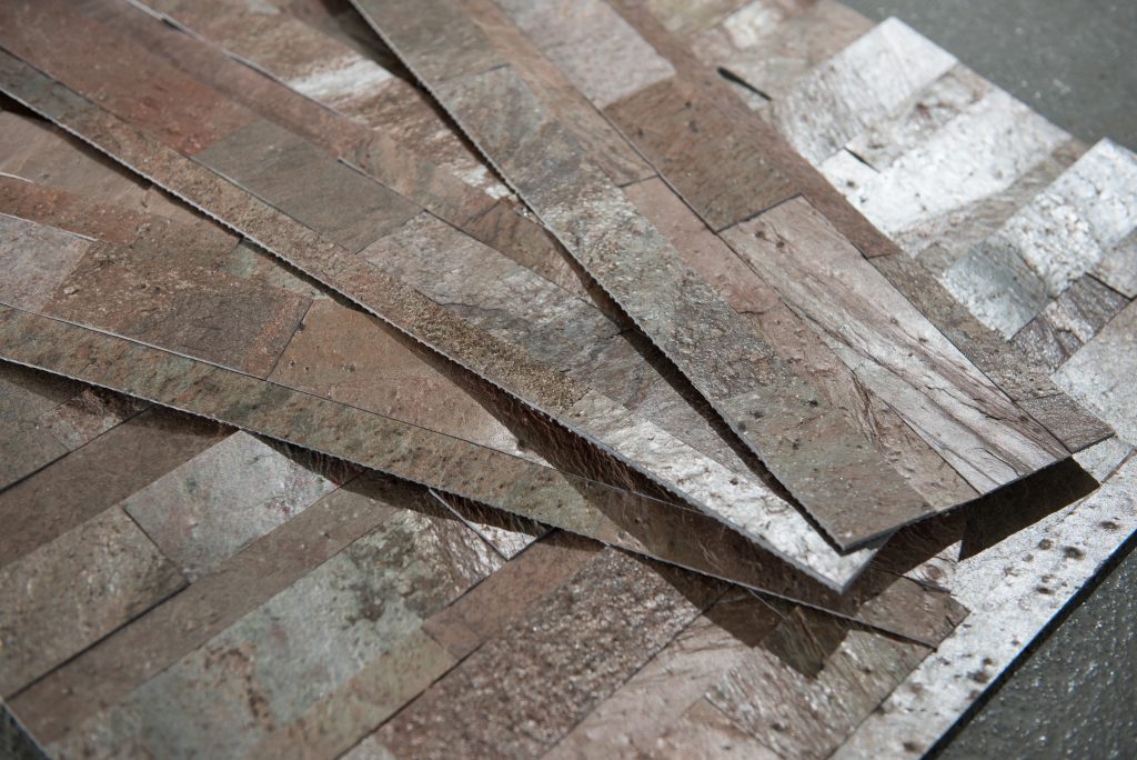 Diese Wandverblender Module bestehen aus schmalen „Naturstein-Streifen“, die zu einem Modul der Größe 60 x 15 x 1-3 mm verklebt sind. Diese Module sind an der Rückseite mit Glasfaser verstärkt und werden einfach mit einem Fliesenkleber an die Wand geklebt.