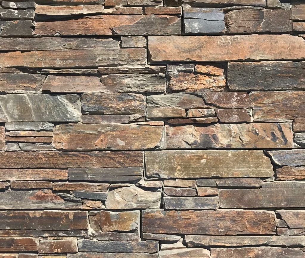 Die Verblender Schiefer Schmal Rustikal werden im Laufe der Zeit im Außen- und Nassbereich etwas oxidieren, wie eine „echte“ Schiefermauer.